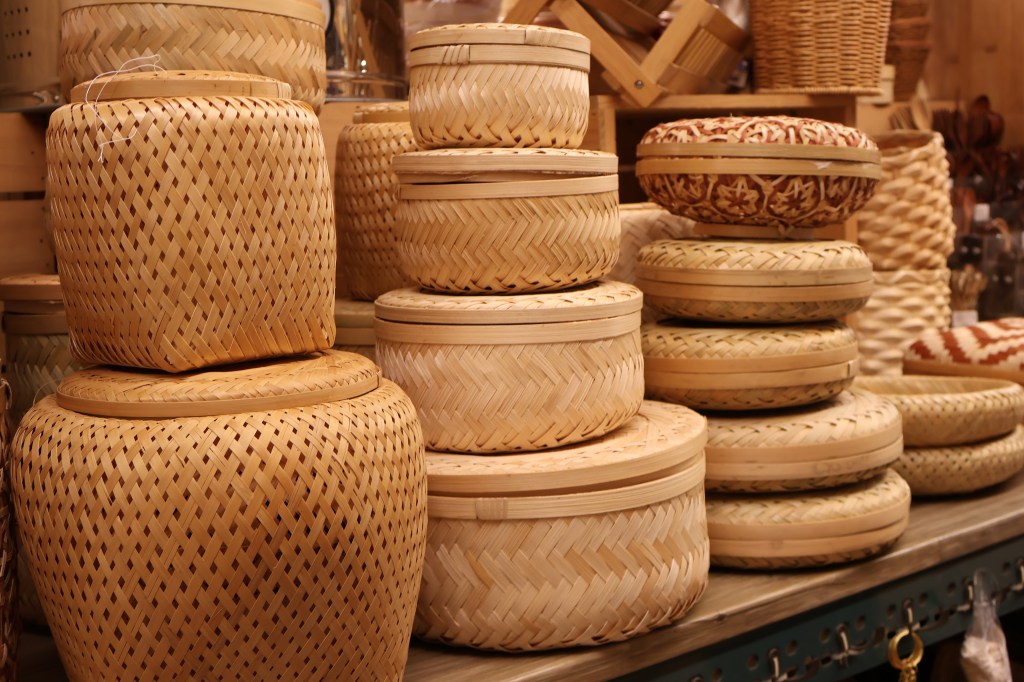 竹編桶、竹編圓籃,閩南語為竹籠仔,昔日多用來盛放生活用品。 攝影/吳艾宣