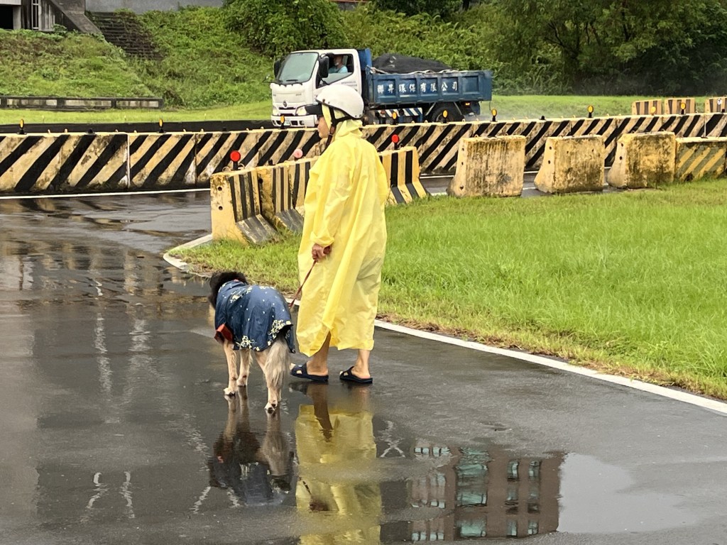 新莊寵物公園旁 有居民在遛狗。攝影/李伯翰