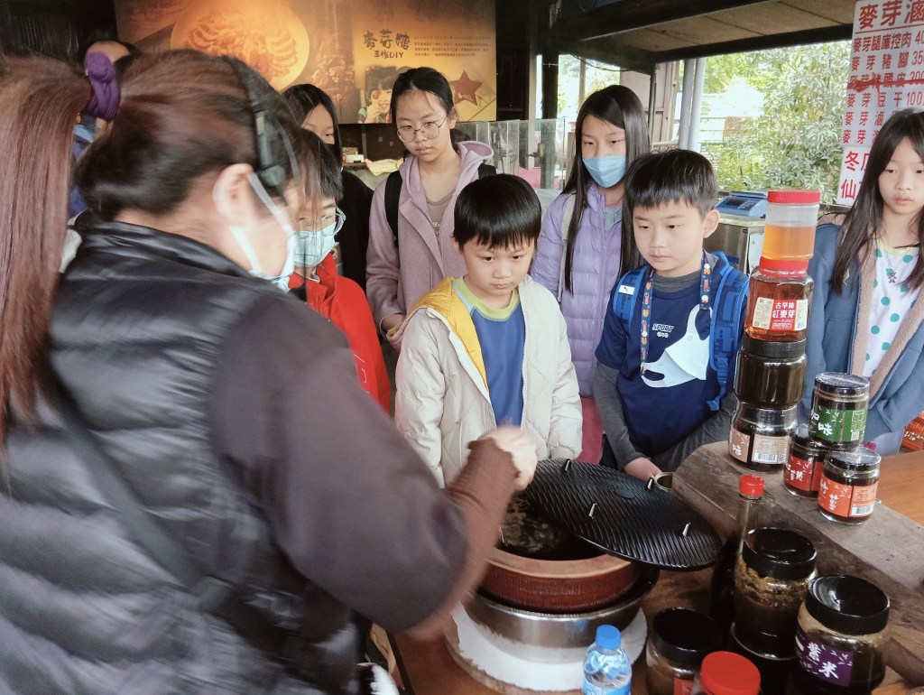 「我們今年特別選擇麥芽糖作為主題,是為了結合新莊在地文化特色。」新莊國小總務主任余素苓表示,學生們先在校內學習種植小麥芽並記錄觀察,再由農會四健會指導員曹俊邦帶領,參訪新莊老街翁裕美商行,了解麥芽糖製作歷史。學生們更前往石碇竹柏苑進行手工柴燒麥芽膏實作體驗,包括灌模及糖畫等技藝。新莊國小學生高近崴分享:「我不止學到了更多關於製糖的知識,也看見了老一輩人對傳統技藝的堅持與熱情,不僅豐富了我的眼界,更讓我對用心做一件事有了更深的體會。」