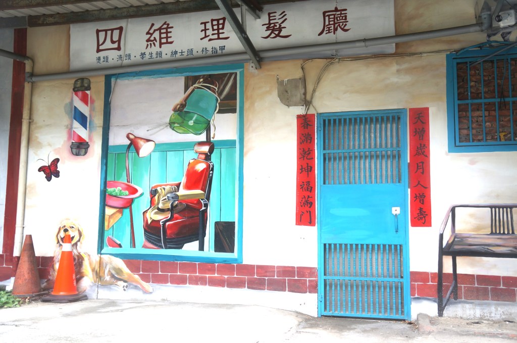 遲鵬洋解釋,四維里早期以農業為主,隨工業化發展形成市場聚落,與居民、里長討論後,決定以「60年代舊新莊」作為美化主題。後巷牆面畫上古早味柑仔店、笑臉迎人的大同寶寶、布料色彩交織的裁縫店與掛上三色旋轉燈的家庭式理髮店,彷彿置身於六〇年代的街景。遲鵬洋說,希望透過懷舊風格的設計勾起居民早期的記憶,也讓沒體驗過的孩童認識往日榮景。