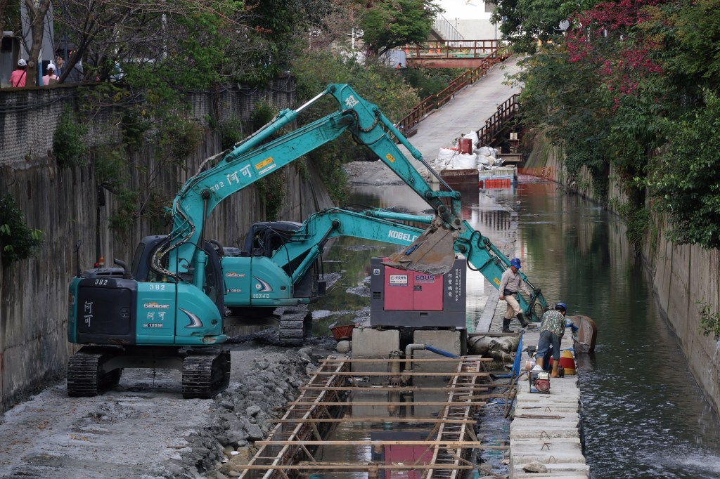 新北市政府水利局雨水下水道工程科幫工程司楊恭長說,工程延宕的原因主要是要改善潭底溝施工動線侷促的問題,因此在河道上新增施工構台連接左右岸。楊恭長進一步說明,另一個延宕原因是剛開始擔心民安橋開挖會導致受力變形,因此不考慮做子溝,但在經過顧問公司重新計算和評估後,確認安全無虞且增設子溝可減少後續渠底回填,於是決定變更工程設計。